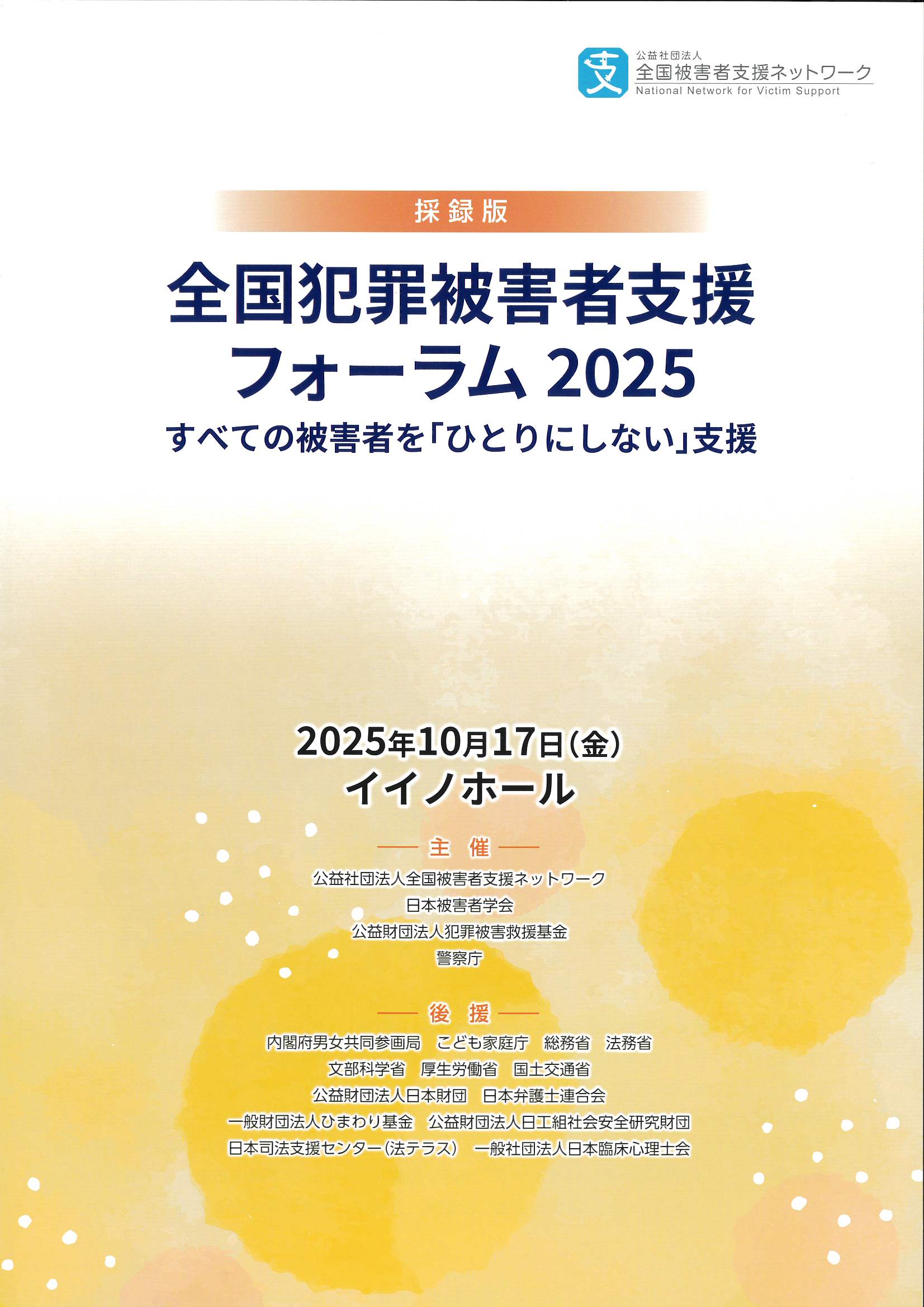 10/18(金)に開催した全国犯罪被害者支援フォーラム2025の採録版を発行いたしました。 採録版は参加された方(現地、YouTube、アー ...